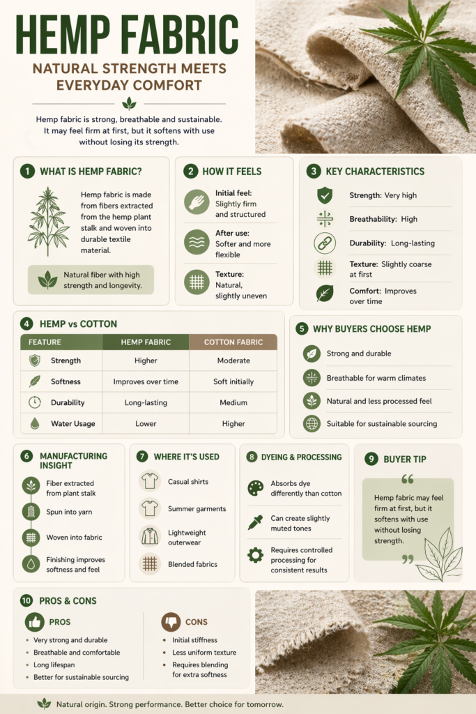 Hemp fabric is strong, breathable, and naturally sustainable, but it doesn’t feel like cotton at first. Over time, it softens and becomes more comfortable, which is why many buyers are starting to take it seriously.